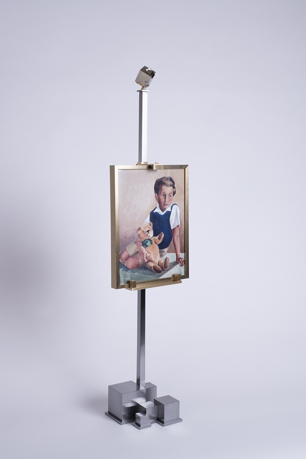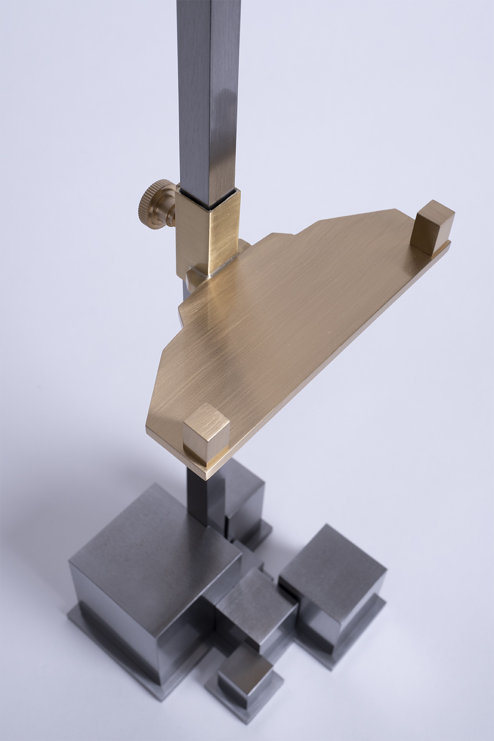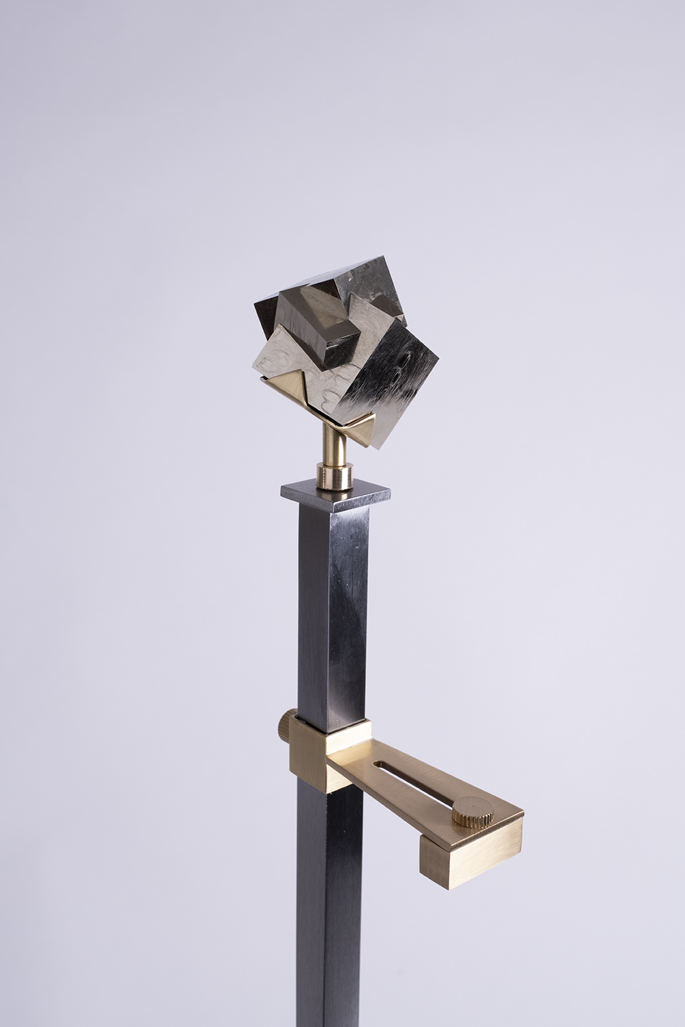 Largeur : 13 cm – Hauteur : 77 cm – Profondeur : 13 cm Poids : 4,9 kg Matière : acier, laiton, pyrite Finition : vernis